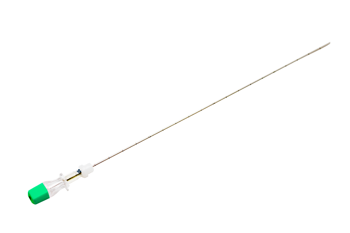 Las agujas Chiba están disponibles y diseñadas para la aspiración de masas de tejido blando para biopsia.